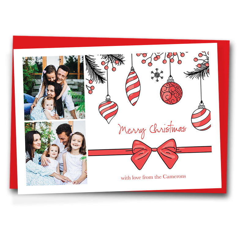 Add two family photos to this festive card to show friends and family afar that you are thinking of them. The back of the card can remain blank or send us (separately) your Christmas family update and we'll print this for you free of any extra charge!