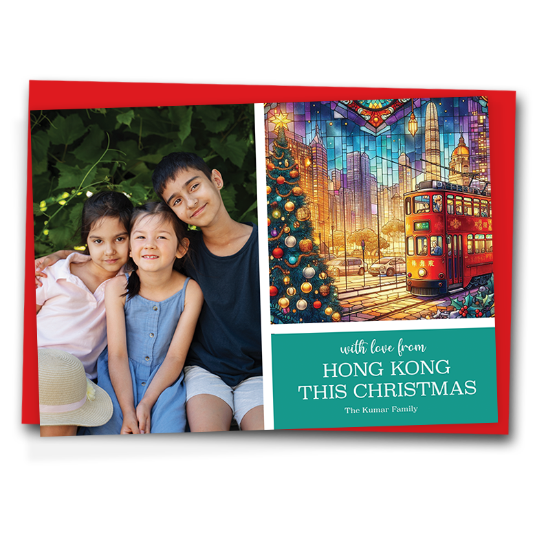 Stained Glass Hong Kong (Green) Personalised Christmas Cards